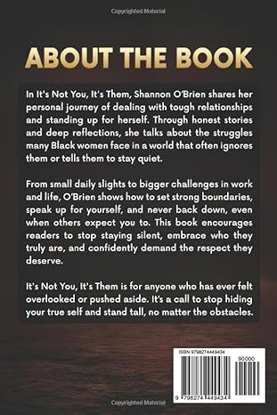 RAW and COMPELLING! Reading It’s Not You, It’s Them is a deep dive into the author’s life and how her experiences have shaped the person she has become. Her honest account of the people and circumstances of her life will have you screaming support and vehemently encouraging her perseverance. Written in the first person, her words provide a gritty and unapologetically subjective voice to being mistreated, subjugated and underestimated. Her maturation forces her to navigate the world with pure tenacity and, in the end, you realize it truly is “them”.